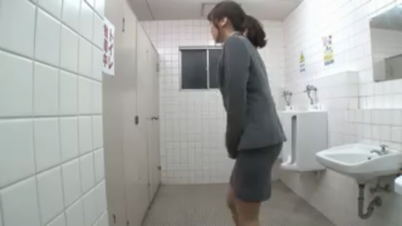 授業中、トイレに行くも、女子トイレが空いてなくて、慌てて男子トイレに駆け込むポニーテールの先生。